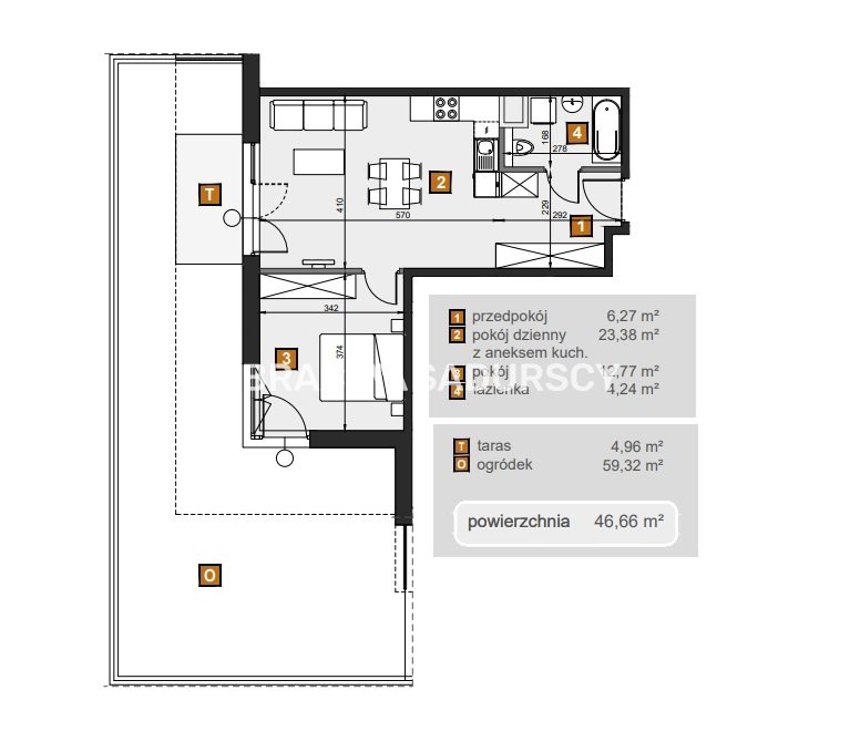 Mieszkanie dwupokojowe z aneksem Ruczaj
