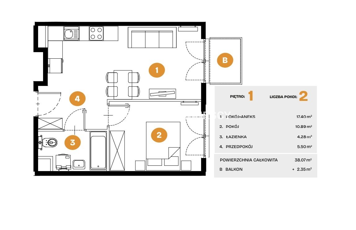 Mieszkanie dwupokojowe z aneksem Ruczaj