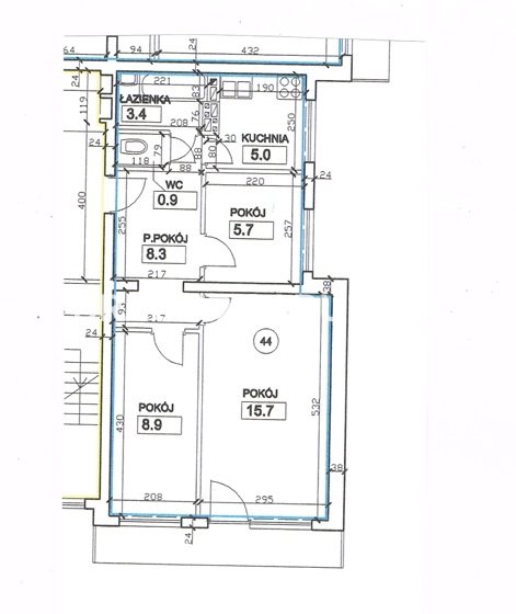 - 3 pokoi ( w tym jeden z wyjściem na loggie )