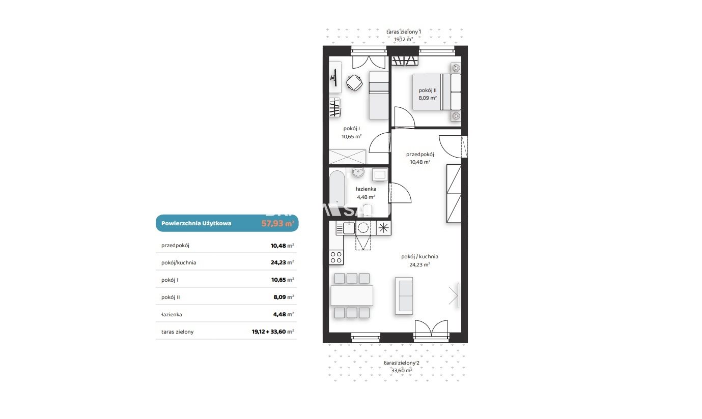 Każdy lokal posiada balkon, taras lub ogródek , stanowiący doskonałą przestrzeń do wypoczynku w otoczeniu zieleni.