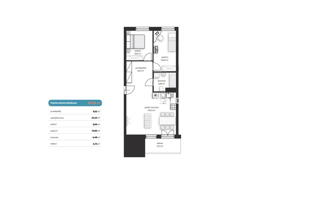 | Pow. użytkowa: | 57.93 m2 |
