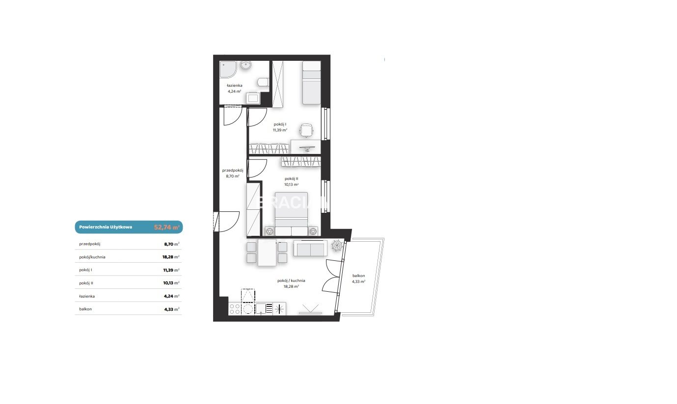 | Pow. użytkowa: | 52.74 m2 |