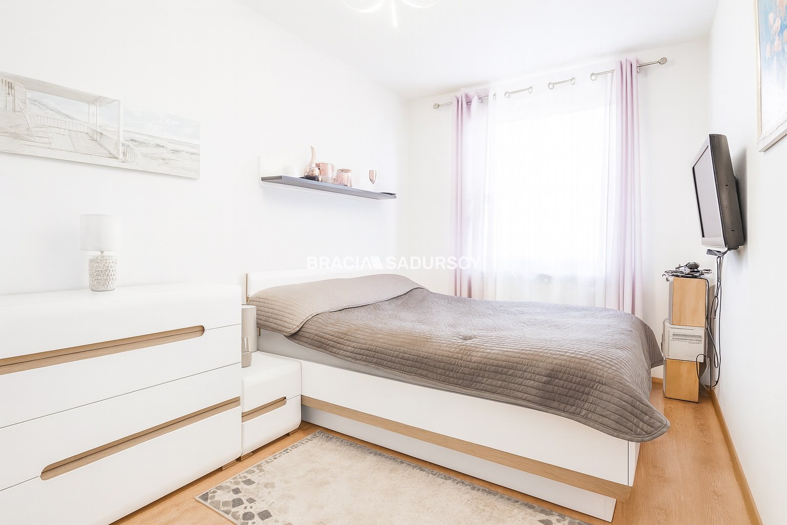 Po wejściu do mieszkania od razu jest sporo miejsca do przechowywania, dzięki czemu każdy znajdzie miejsce na swoją odzież czy kolekcję piękny butów. Salon ma ekspozycję okien aż na trzy strony świata oraz wyjście na balkon, na którym można rozkoszować się widokiem zachodzącego słońca.