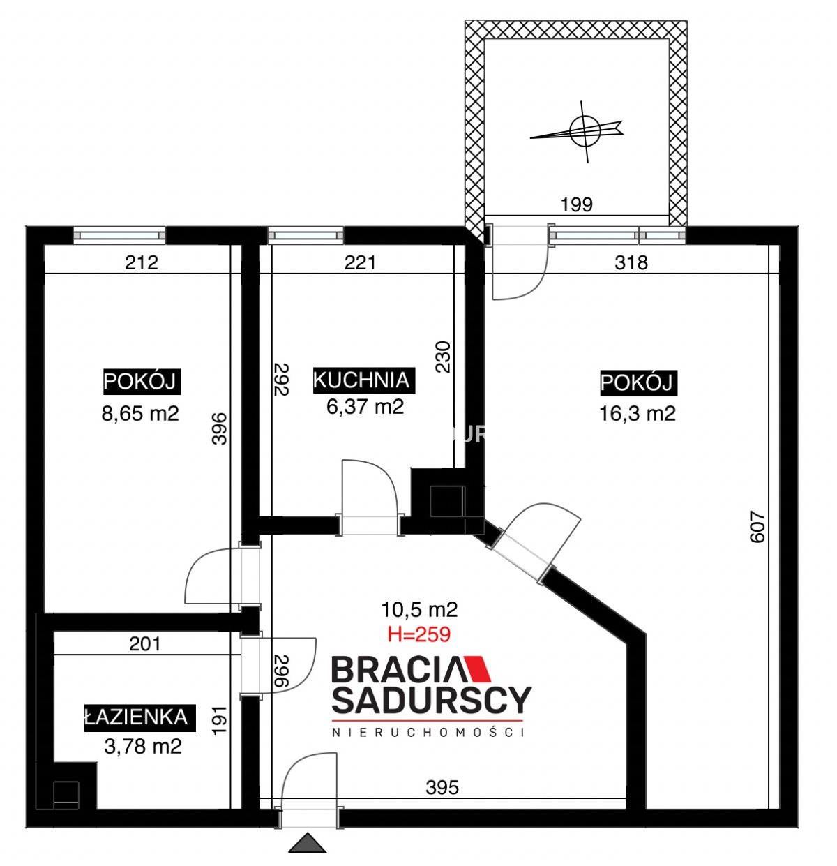 - dwa niezależne pokoje o pow. 8,6 i 16,3 m 2