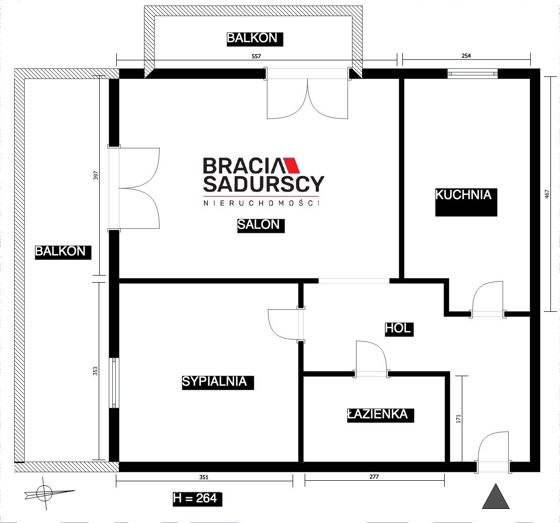 Większy balkon zachodni ma powierzchnię 9,79 m2 a mniejszy z ekspozycją pólnocno-wschodnią 4,92 m2.