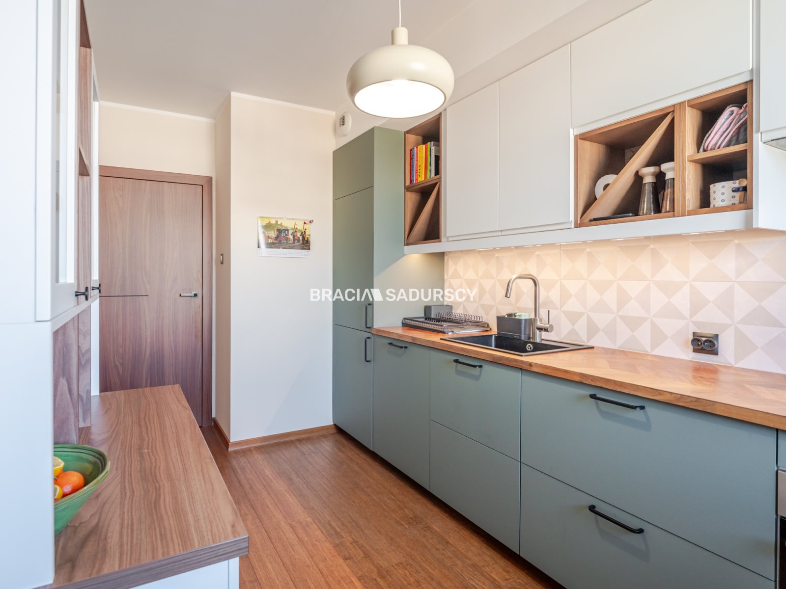 - w pokojach, kuchni i przedpokoju położono deskę bambusową czyli naturalne, egzotyczne drewno odporne za uszkodzenia i wilgoć