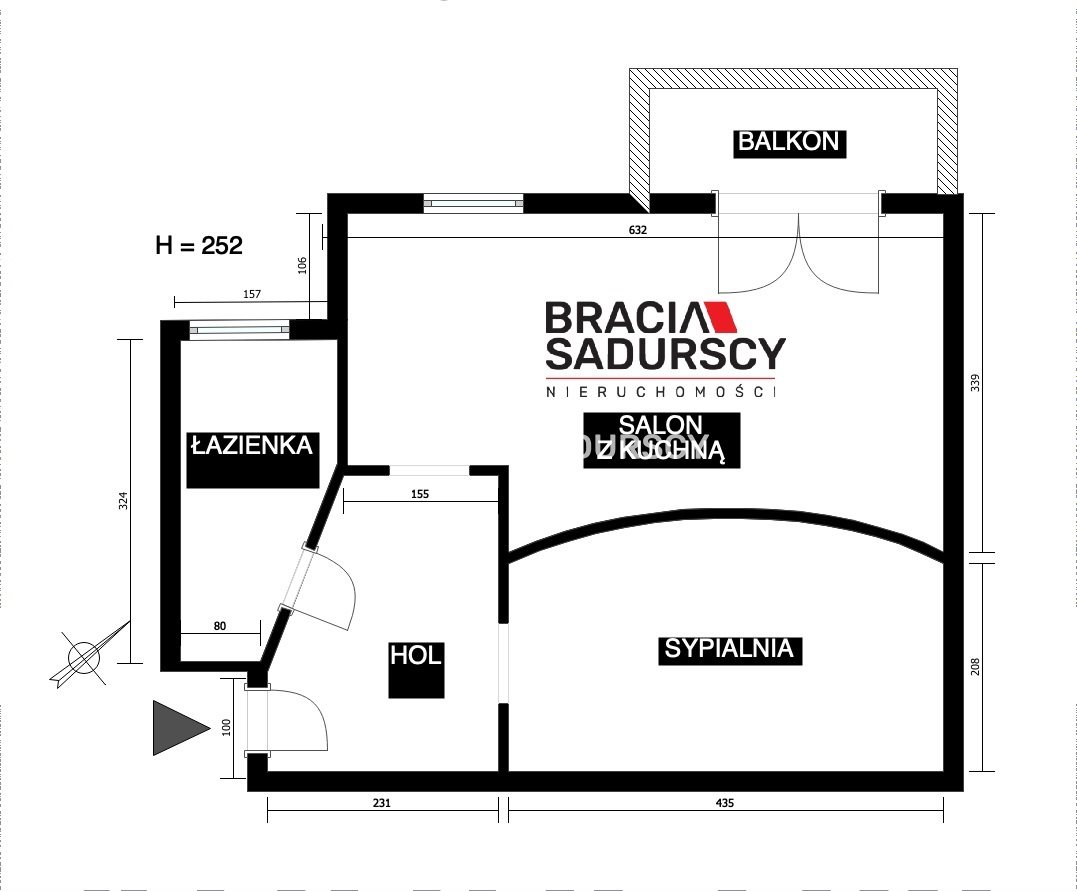 Salon z aneksem kuchennym i wyjściem na balkon