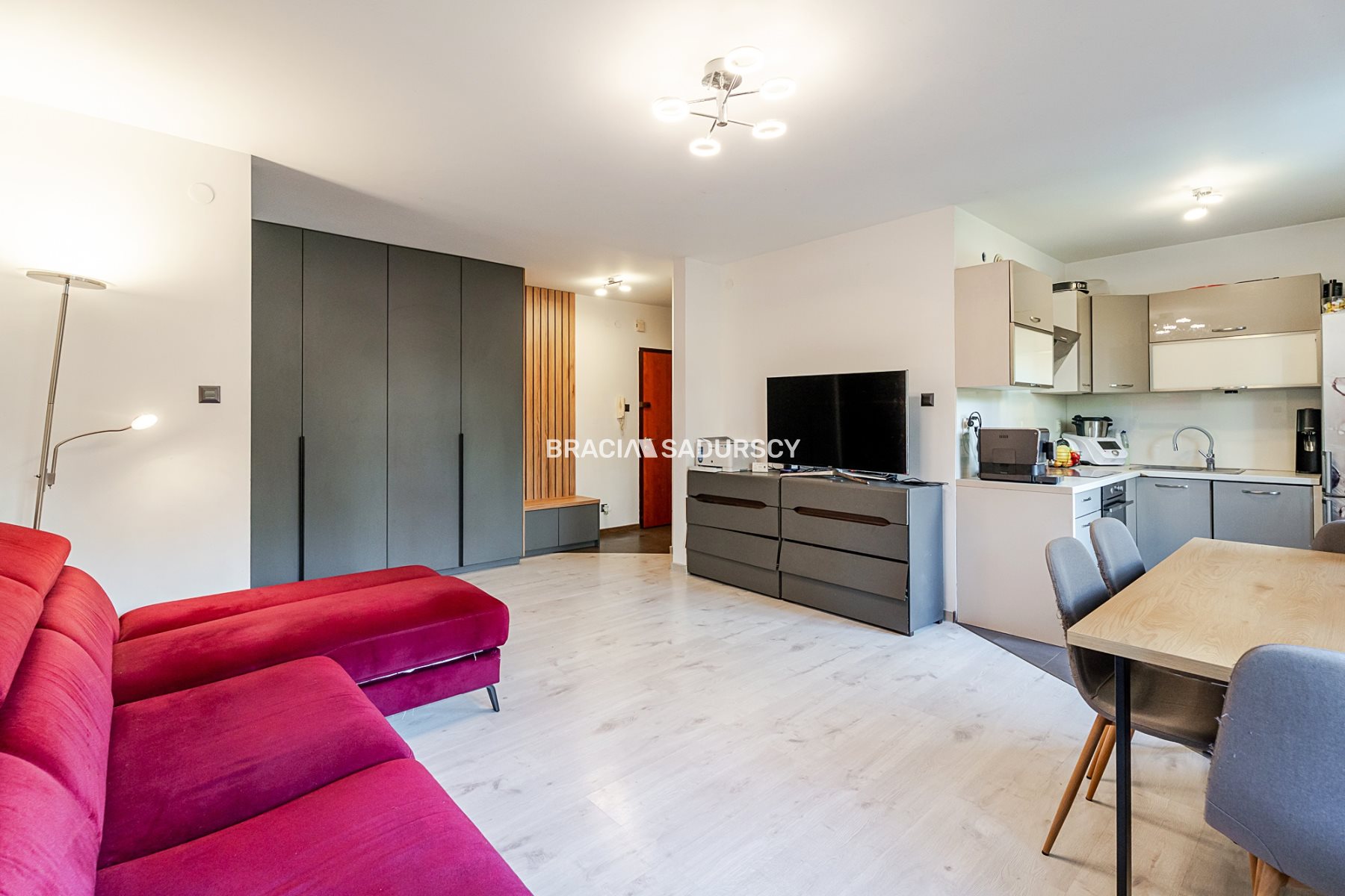 - Salonu z aneksem kuchennym i wyjściem na balkon (6m2)