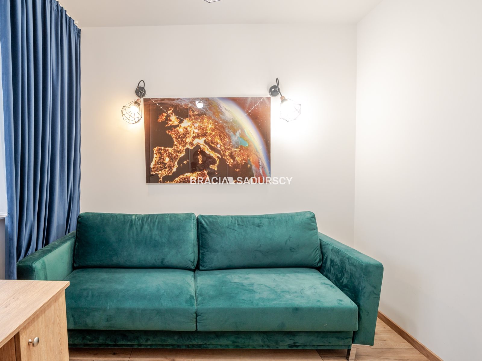 Na powierzchnie mieszkania składają się dwa niezależne pokoje o pow. 14,5 i 10,5 m 2 - oba pokoje z rozkładaną sofą, bardzo pojemną szafą oraz miejscem do pracy. Dzięki przemyślanemu projektowi oba pokoje są w pełni funkcjonalne i zapewniają prywatność.