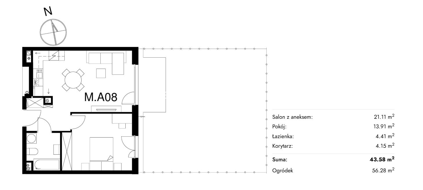 Każde mieszkanie posiada balkon, taras lub prywatny ogródek , zapewniając dodatkową przestrzeń do relaksu i odpoczynku.