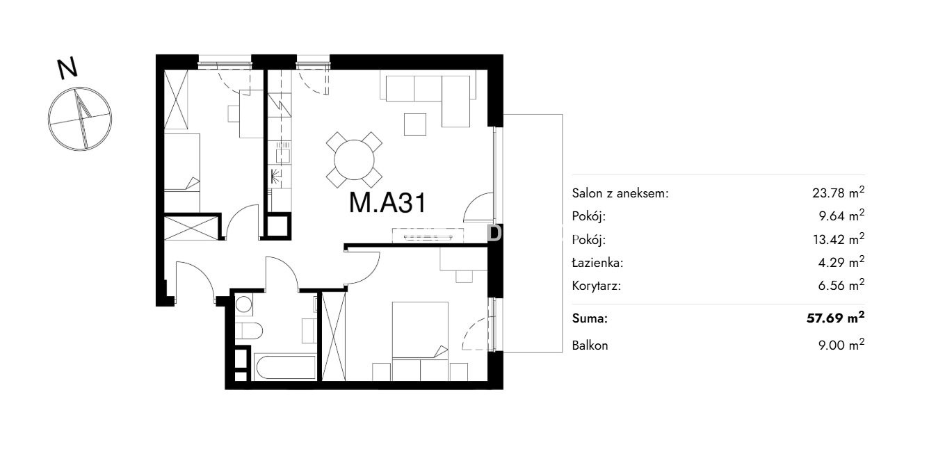 | Pow. użytkowa: | 57.69 m2 |