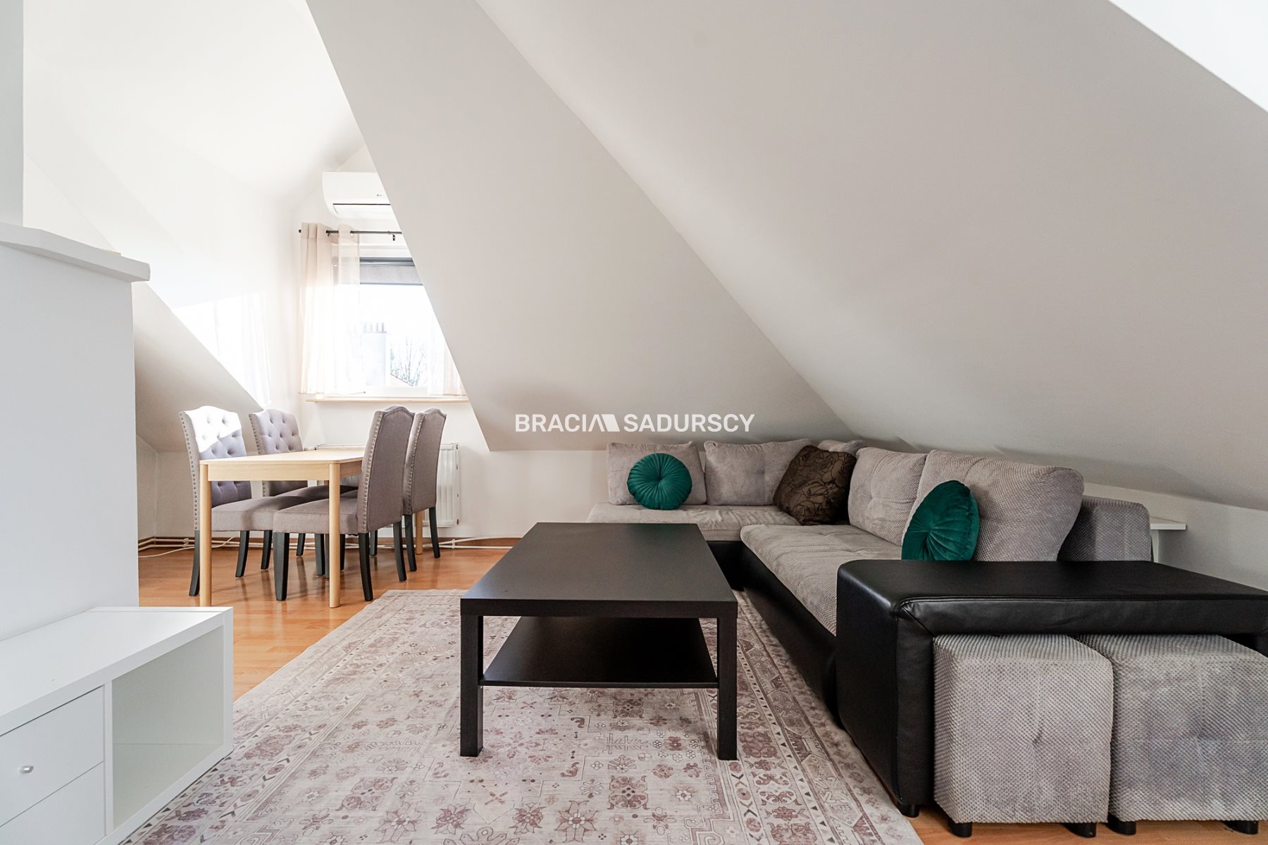 Dodatkowym atutem jest wykonana nad mniejszym pokojem antresola o powierzchni 5 m² (wysokość 1,4 m) z oknem i oświetleniem - idealna jako dodatkowa przestrzeń do przechowywania, strefa relaksu lub miejsce do pracy.