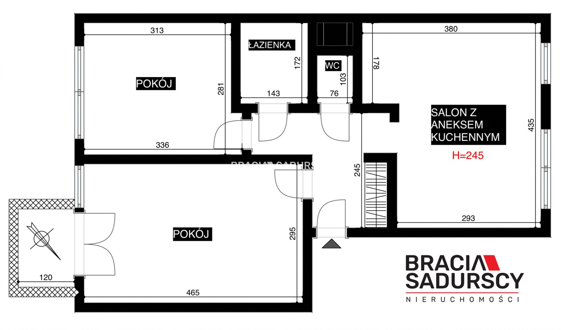 Mieszkanie w stanie do remontu z olbrzymim potencjałem inwestycyjnym. Możliwość podzielenia salonu z aneksem kuchennym i uzyskania 3 odrębnych pokoi + oddzielnej kuchni