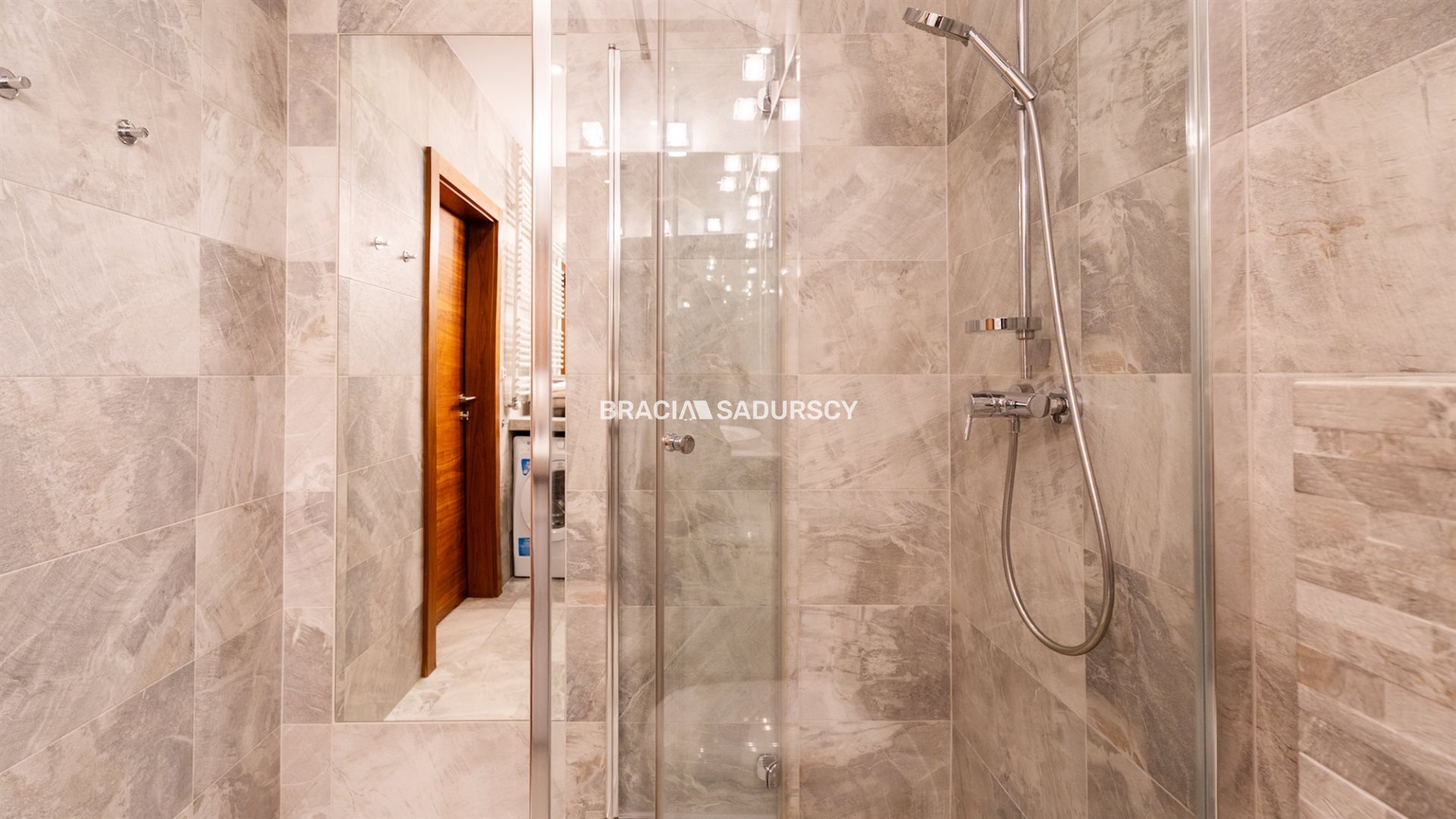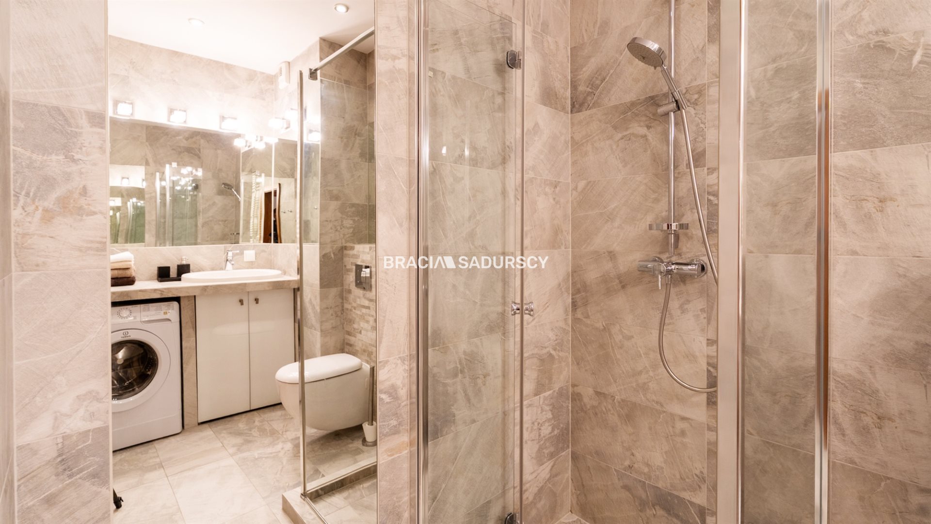 Mieszkanie wykończone w wysokim standardzie - na podłogach naturalne panele z orzecha amerykańskiego oraz gres, ogrzewanie miejskie + ogrzewanie podłogowe, designerskie oświetlenie i zabudowa meblowa wykonana na zamówienie.