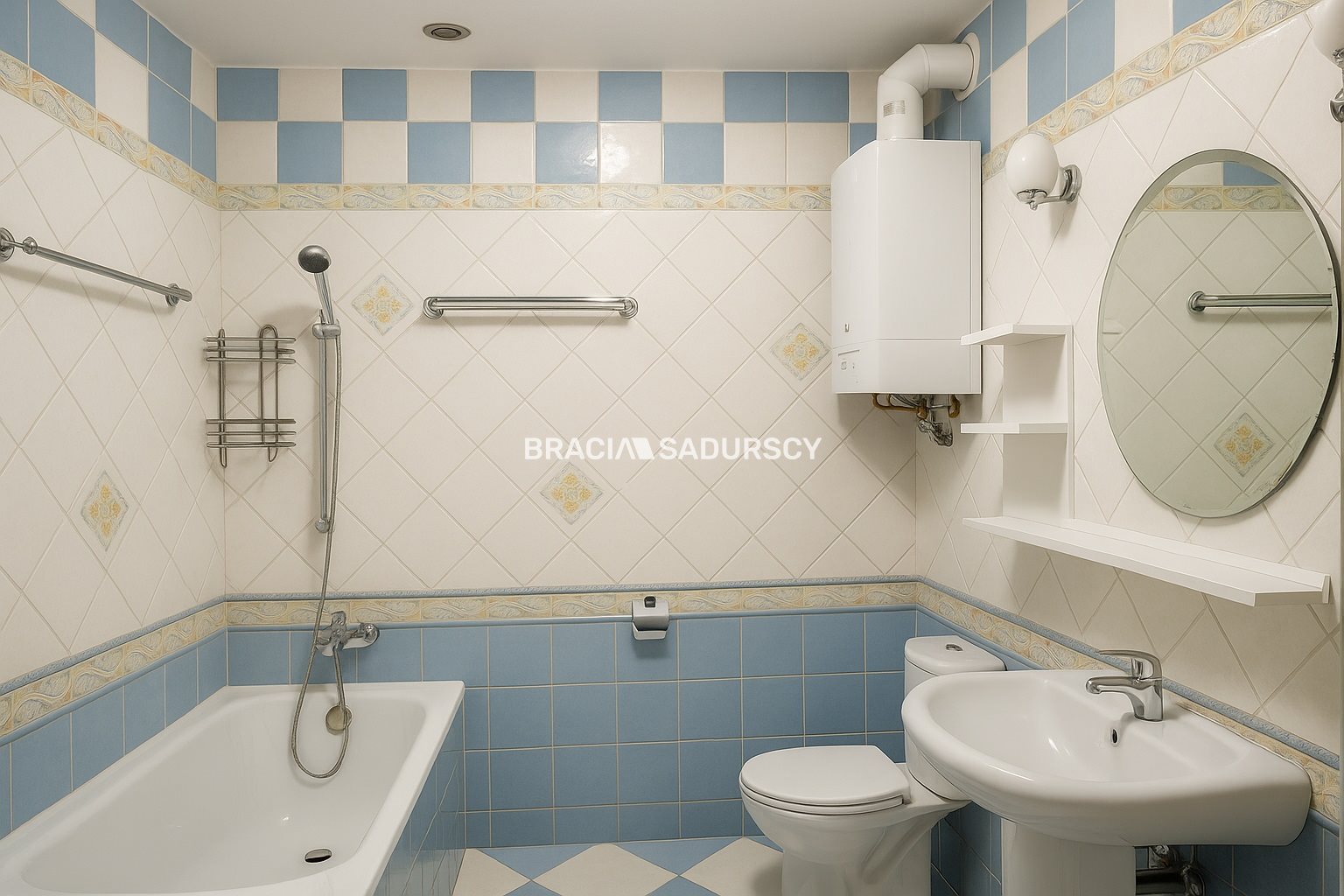 Ogrzewanie i ciepła woda z pieca gazowego umieszczonego w łazience.