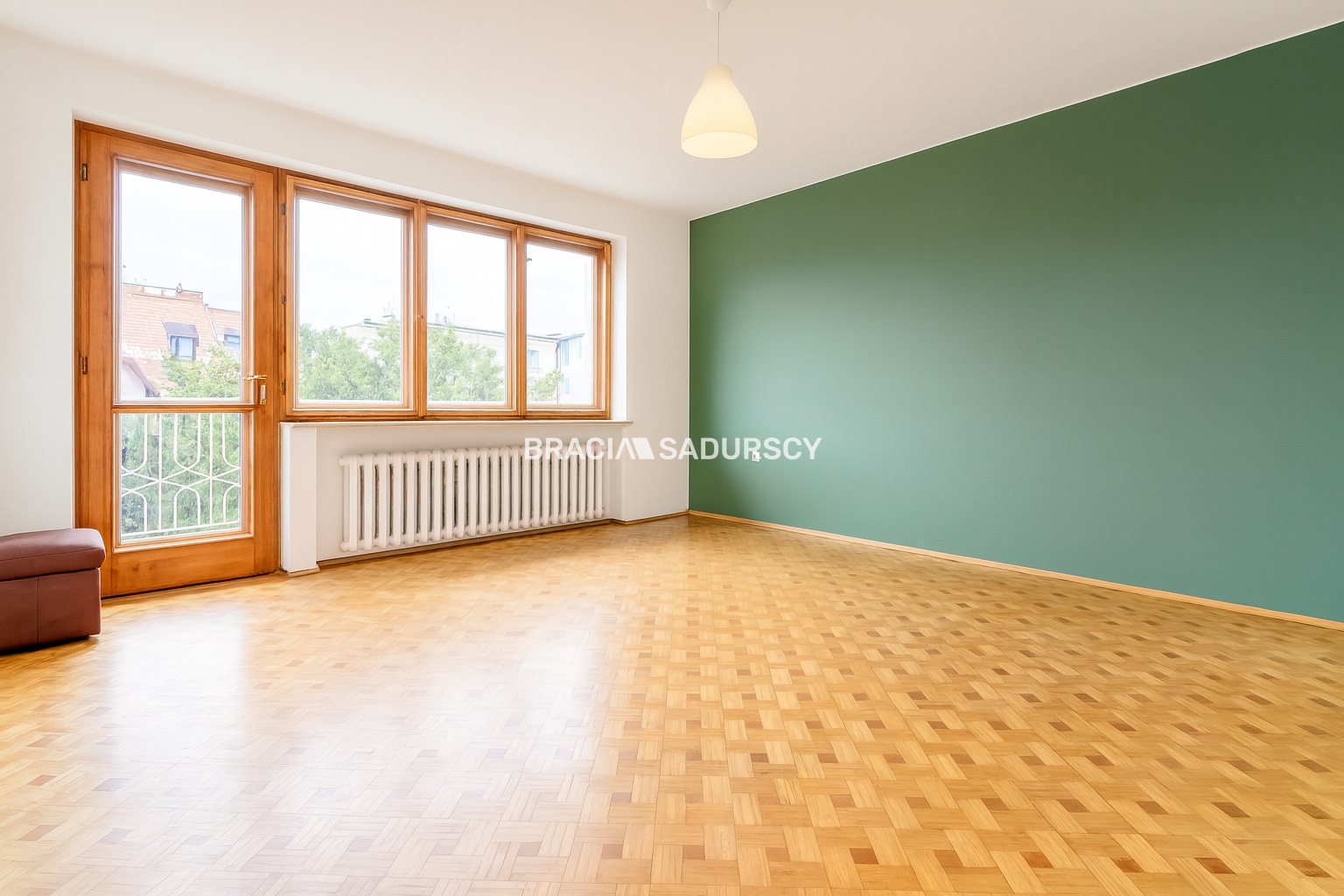 Z dwóch pokoi wyjście na balkon z widokiem na ogród . Lokal jest jasny, słoneczny i świeżo odmalowany .