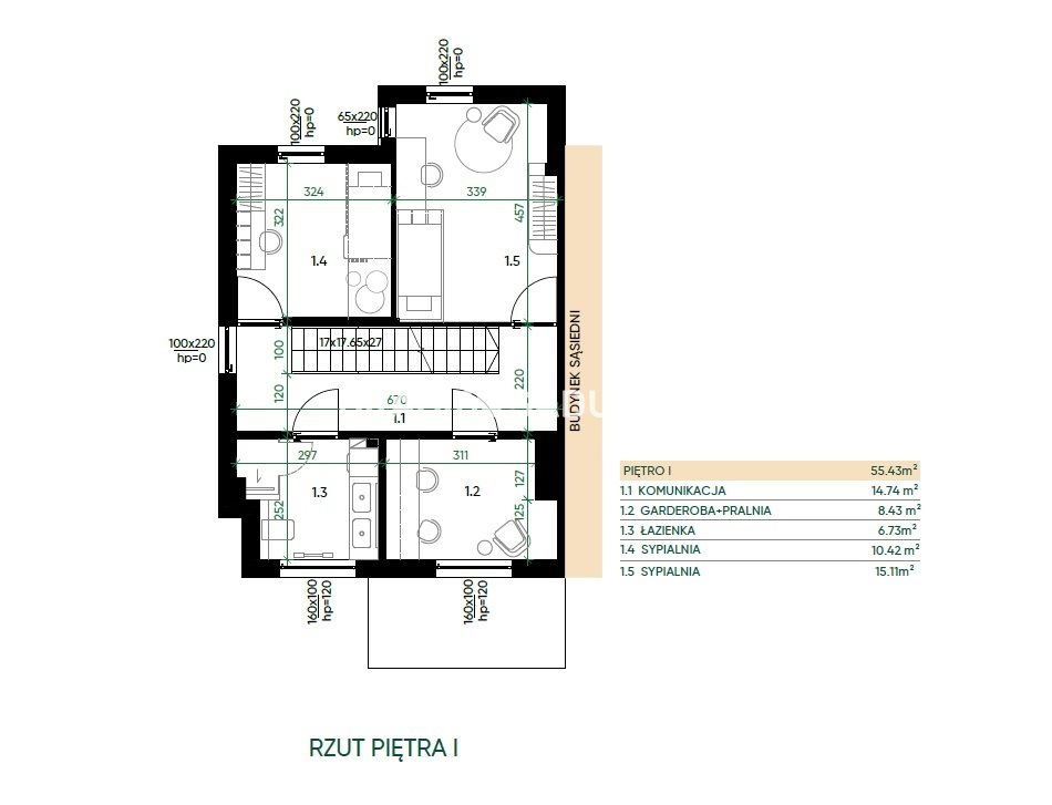 14 przestronnych domów w zabudowie szeregowej o powierzchni ok. 139 m² .