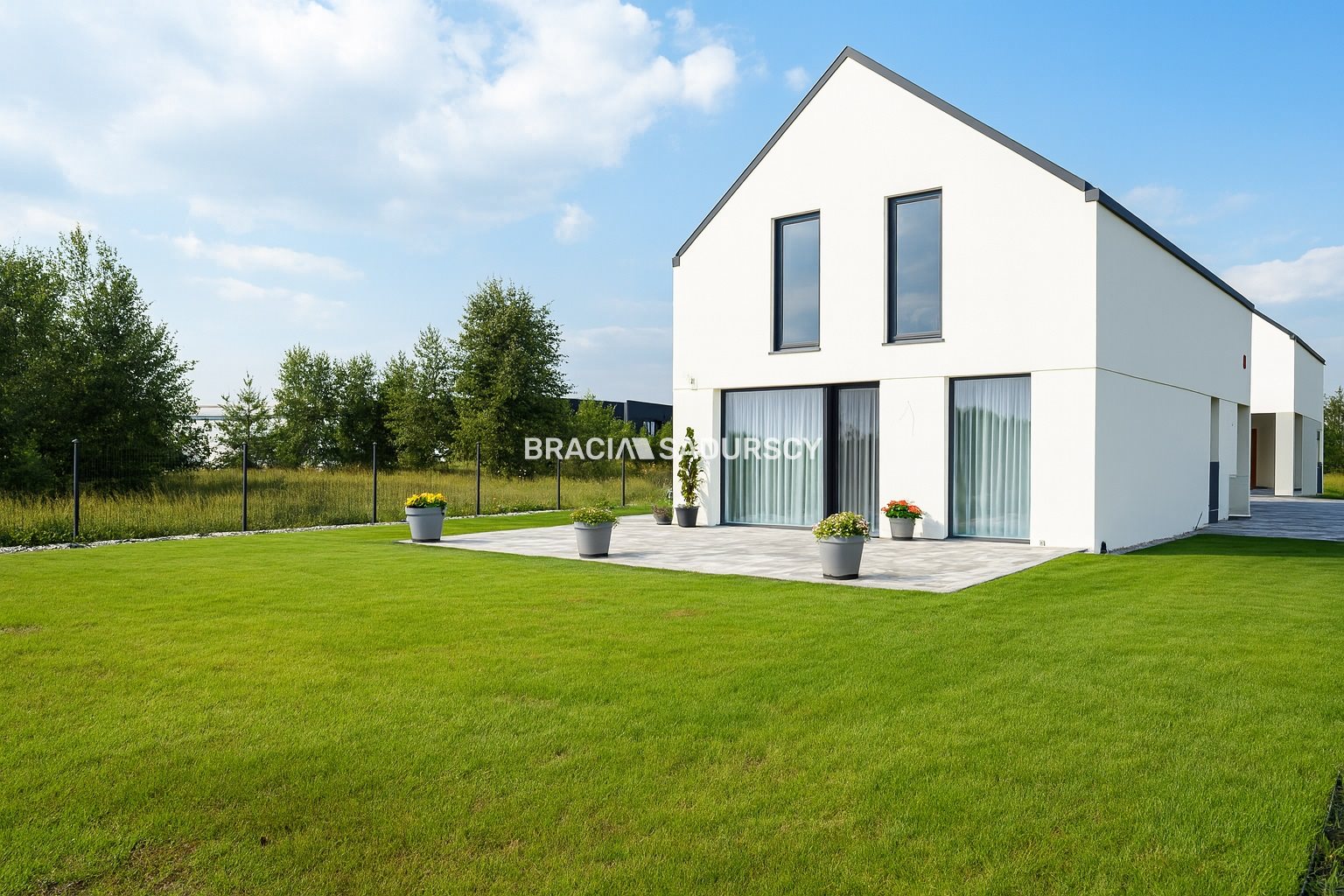 Całość inwestycji: domów, strefy zielonej, obejścia, wjazdu z kostki brukowej tworzy spójną nowoczesną mocno atrakcyjną jakość.