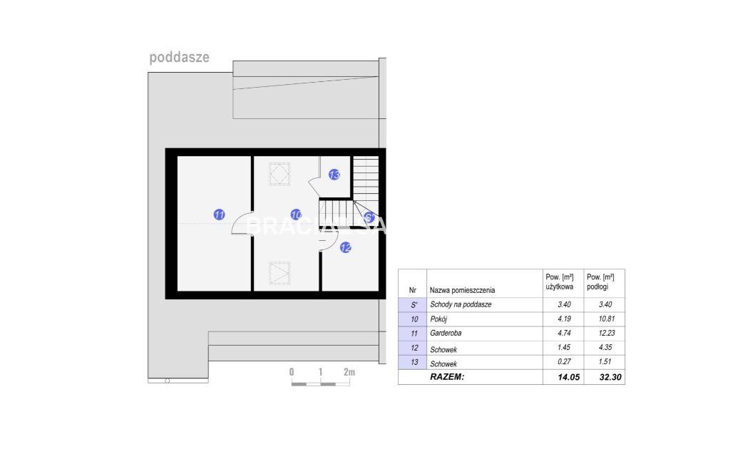 -Mieszkanie znajduje się na piętrze budynku w zabudowie bliźniaczej i składa się z przestronnego pokoju dziennego z aneksem kuchennym, dodatkową przestrzenią na spiżarnię, dwóch wygodnych pokoi oraz dużej łazienki. Na poddaszu znajduje się duża sypialnia, z możliwością wydzielenia drugiej łazienki.