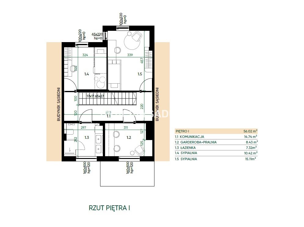 14 przestronnych domów w zabudowie szeregowej o powierzchni ok. 139 m² .