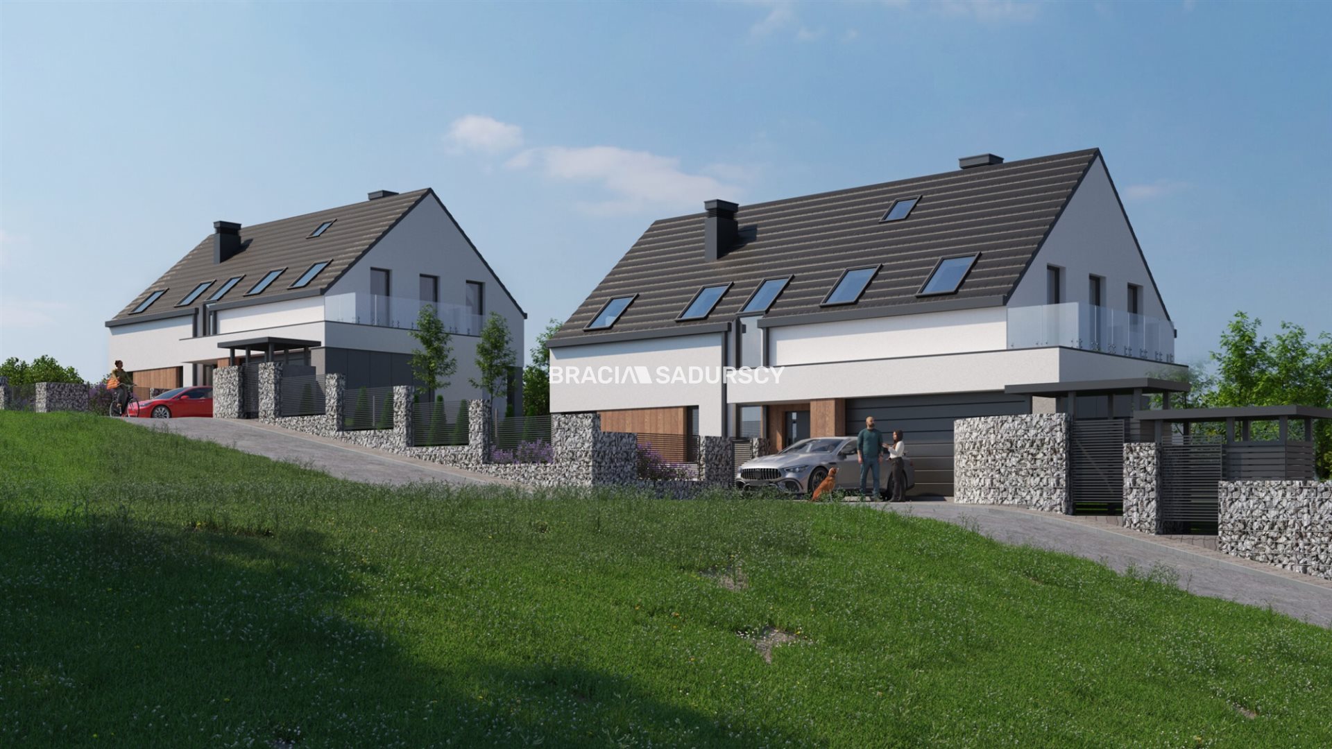 Każdy dom posiada dwie główne kondygnacje, parter z przestronnym tarasem i ogródkiem, piętro, garaż i dwa miejsca postojowe oraz wspaniałe sielankowe widoki, dodatkowo strych do własnej adaptacji.
