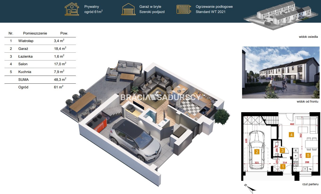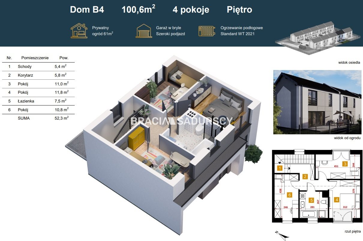 + ogródek o pow.ok 61m2