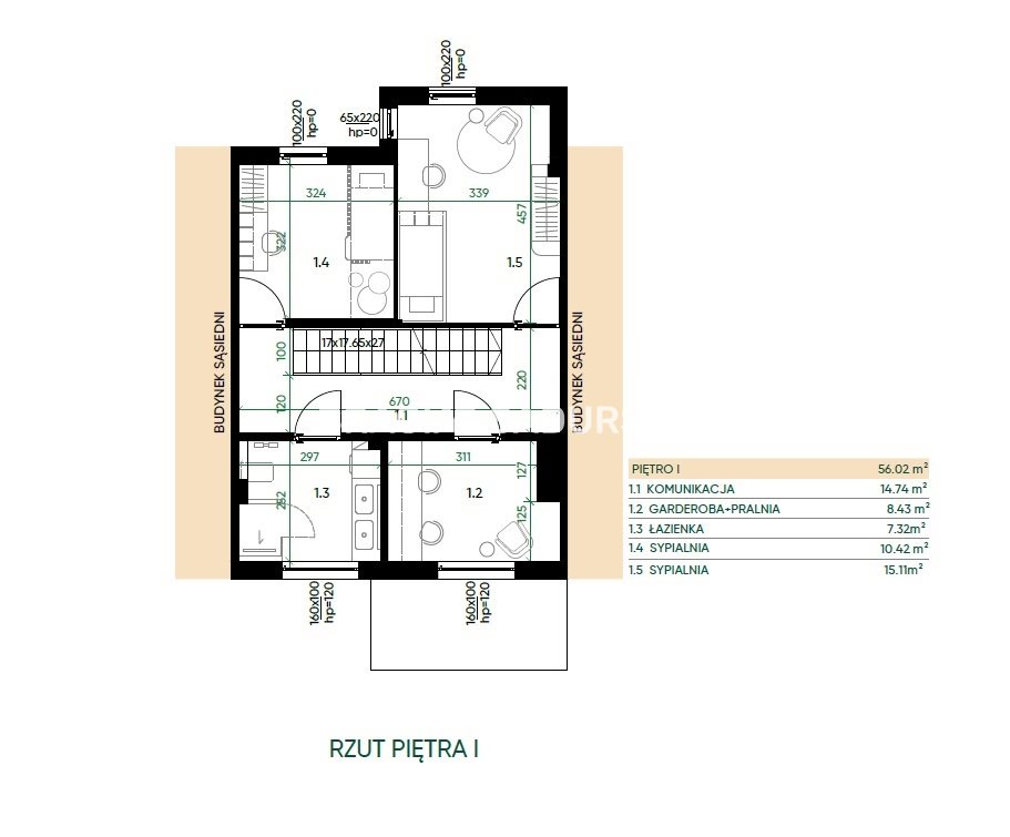14 przestronnych domów w zabudowie szeregowej o powierzchni ok. 139 m² .