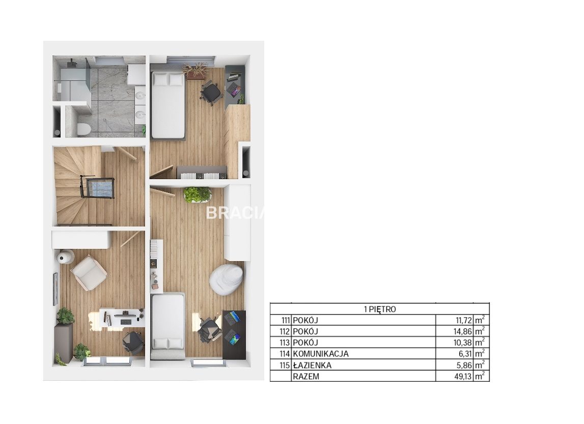 I piętro - 3 sypialnie, łazienka