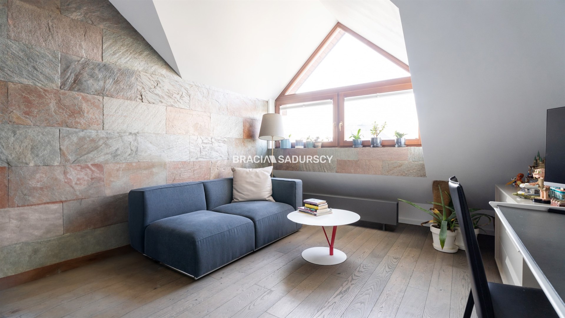 Salon ma dostęp do sporego, intymnego tarasu, wychodzącego na zieleń i graniczącego bezpośrednio z sąsiednią działką, atutem jest brak sąsiadów patrzących w okna.
