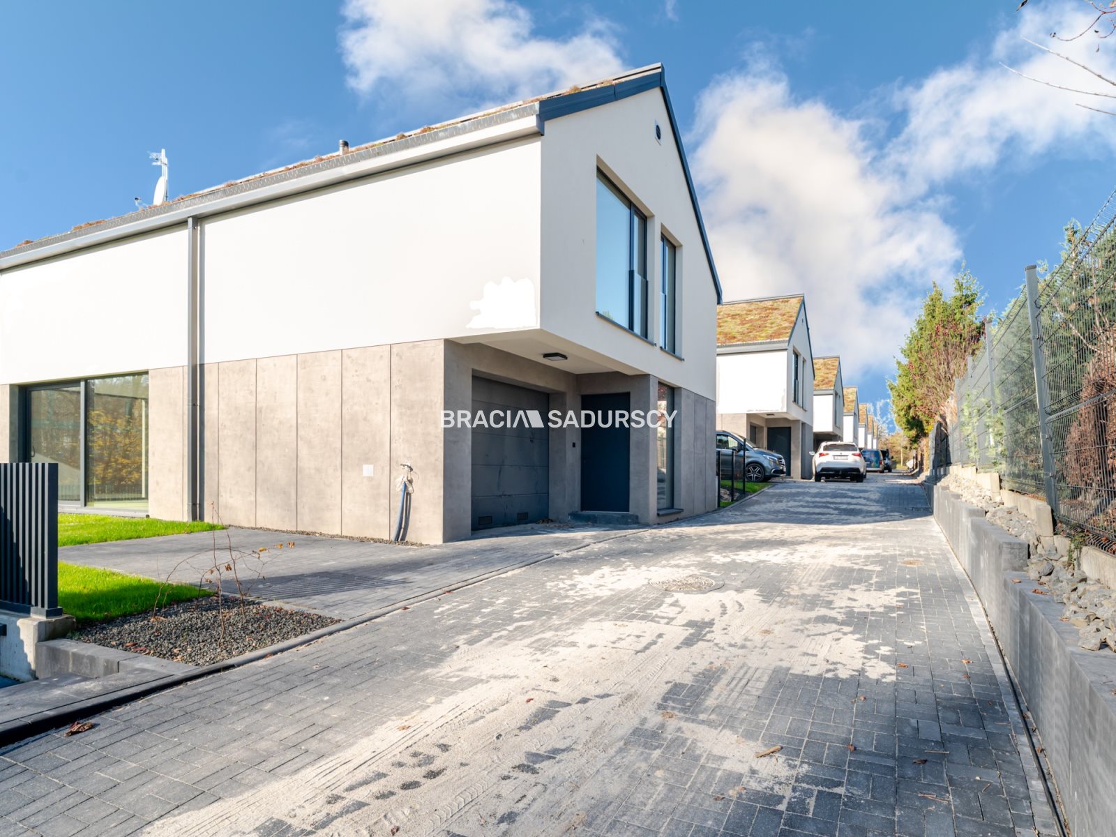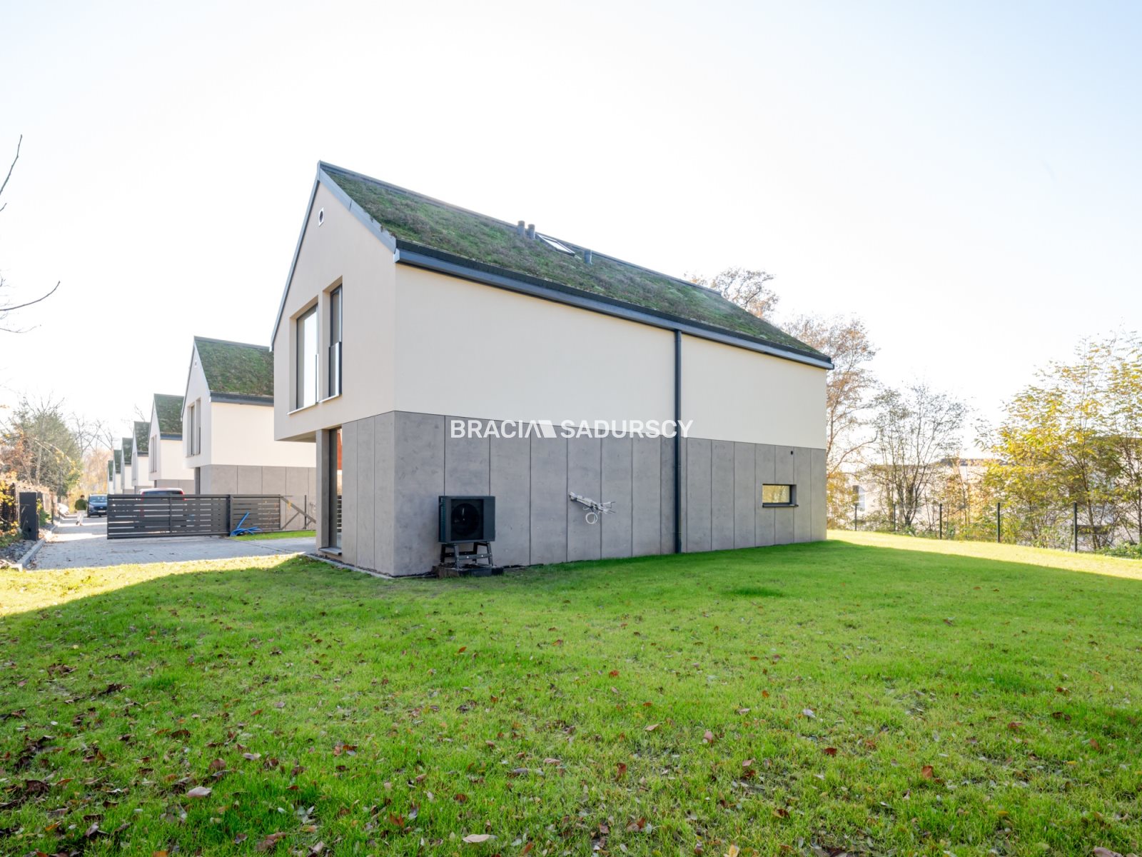 Przed każdym domem dwa miejsca postojowe i jedno można zadaszyć wiatą.