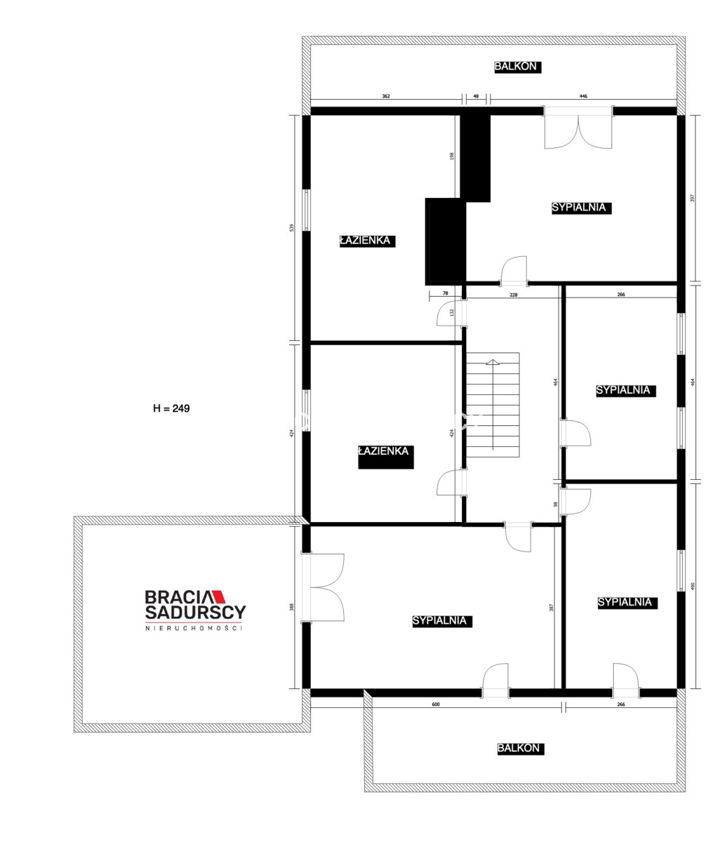 Rozkład pomieszczeń na piętrze ( poddasze):