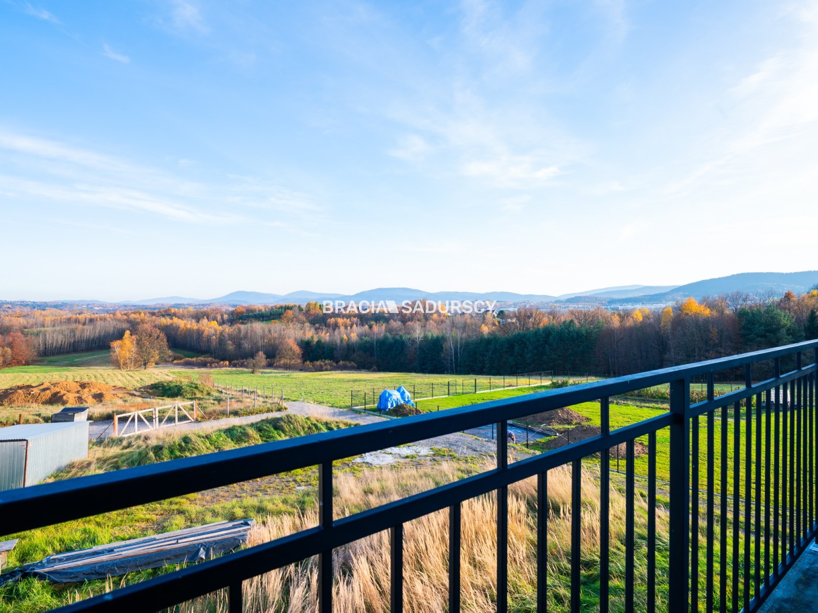 Działka jest położona na wzgórzu, skąd rozpościerają się piękne panoramiczne widoki na Beskidy.