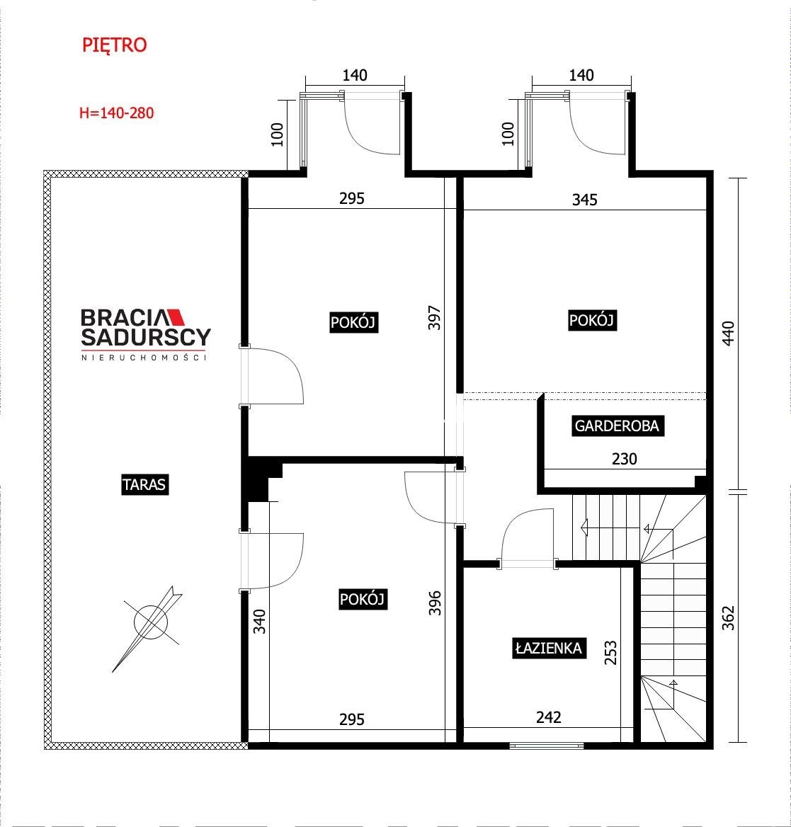 Nieruchomość ma powierzchnię 168 m² i składa się z trzech kondygnacji: