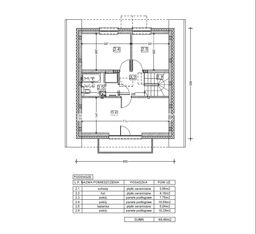 • technologia tradycyjna (POROTHERM 25 cm + ocieplenie 20 cm)