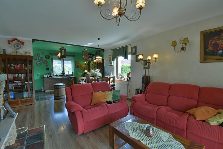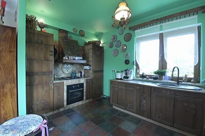 Budynek mieszkalny wybudowany w 2011 r. Dom został wykończony w wysokim standardzie, bardzo gustownie i funkcjonalnie. Dom posiada nowoczesne rozwiązania, aczkolwiek sam wystrój jest niezmiernie klimatyczny. Ustawny salon z zachodnią ekspozycją i kominkiem. Kuchnia w pełni wyposażona, w sprzęt najwyższej klasy-lodówka, piekarnik, płyta gazowa, zmywarka 60 cm, okap. Meble dębowe, niezwykłej urody wykonywane przez stolarza, na wymiar, wg indywidualnego, bardzo oryginalnego projektu. Piękne okucia zadziwiają swą oryginalną, wysublimowaną formą. W kuchni - ogrzewanie podłogowe. Zmywarka i piekarnik po wymianie w 2023 roku. Dwie łazienki - jedna z wanną wolnostojącą, z możliwością podłączenia bidetu, a druga na górze z podłączeniem pod prysznic. W obu ogrzewanie podłogowe. Górna łazienka jest jeszcze do wykończenia tzn. do pomalowania i montażu armatury. Obłożona jest stylowymi, ręcznie wykonanymi płytkami. Na podłogach panele wysokiej klasy. Schody drewniane. Ogrzewanie podłogowe w kuchni oraz w łazienkach. Przestronność i swoboda ruchu. Garaż w bryle budynku.