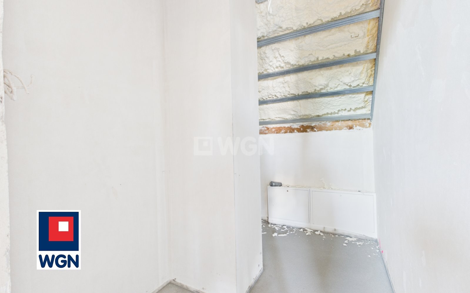 - Strop betonowy, schody żelbetowe, ściany działowe z cegły
