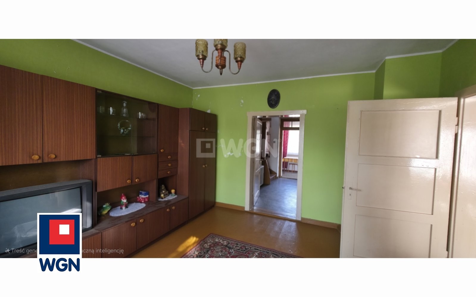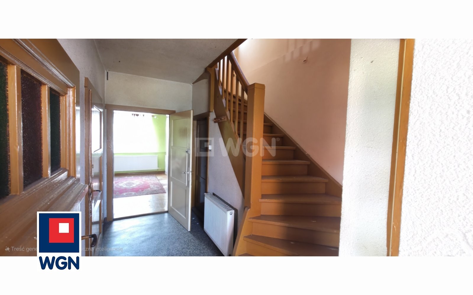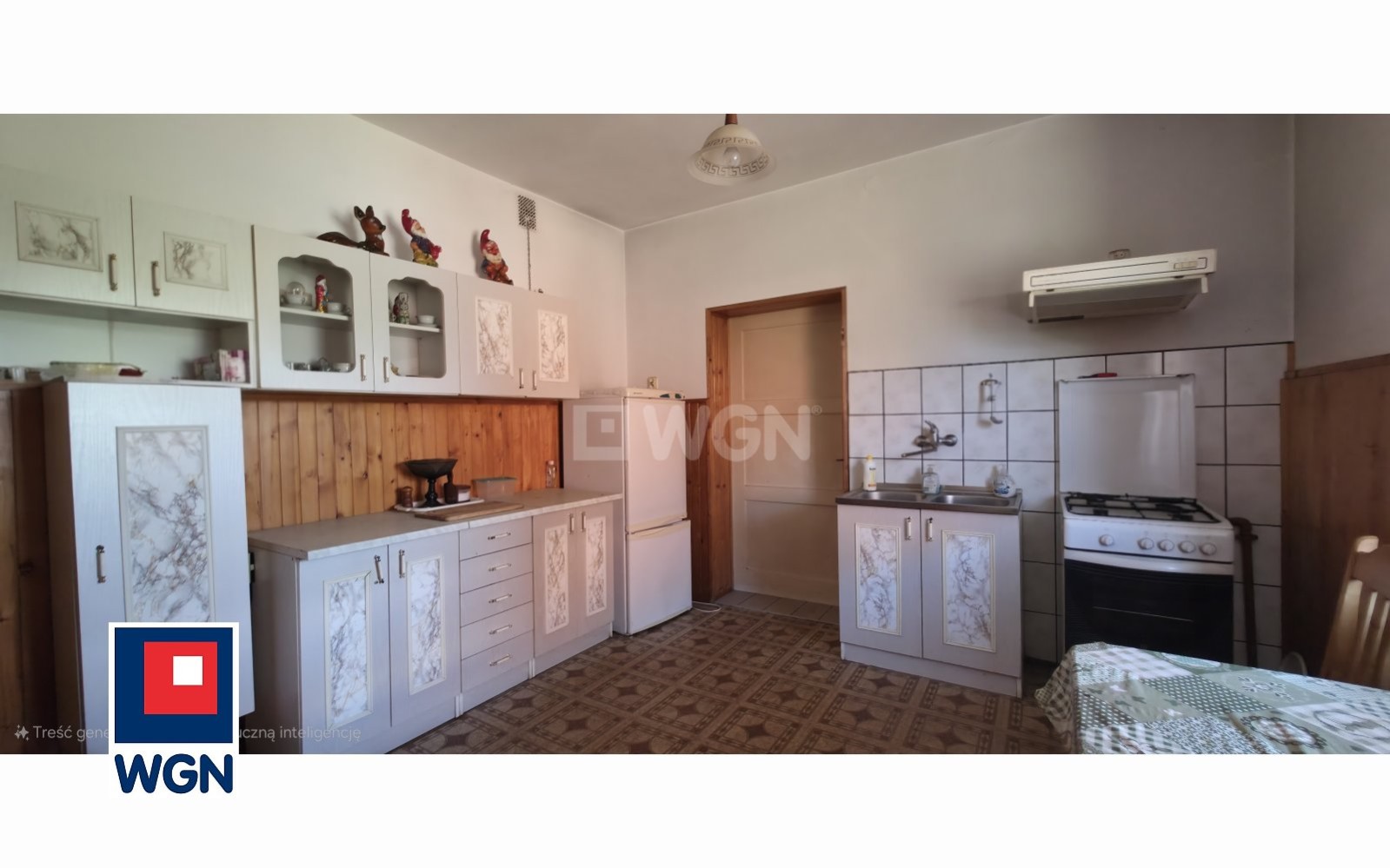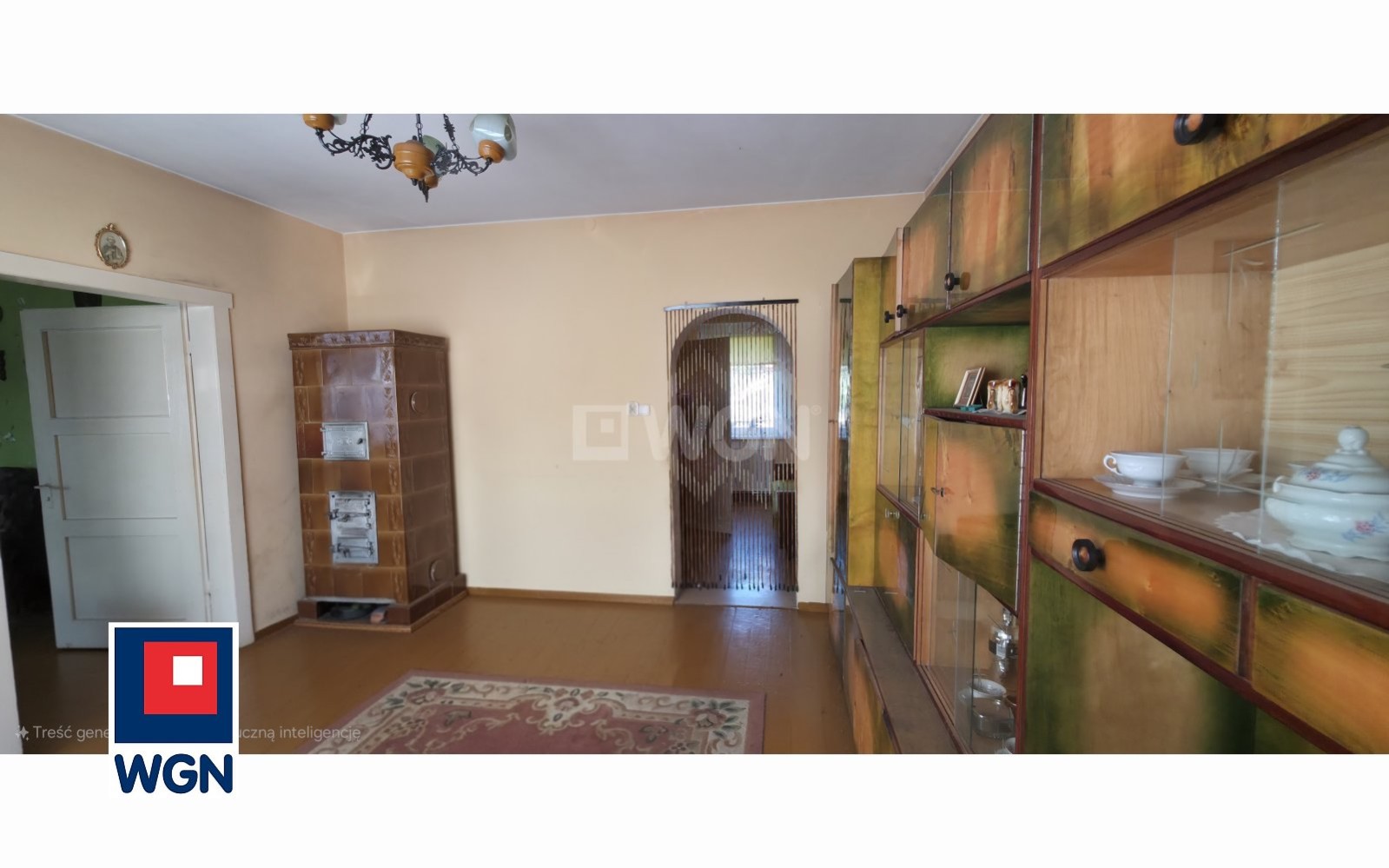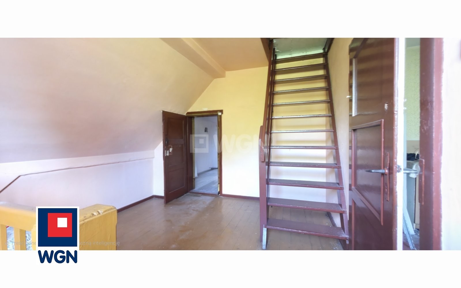 Dom o powierzchni około 150 m2 składa się z ganku, przedpokoju, pięciu pokoi, kuchni, łazienki, piwnicy, dodatkową przestrzeń do zagospodarowania stanowią pomieszczenia ze skosami na piętrze.