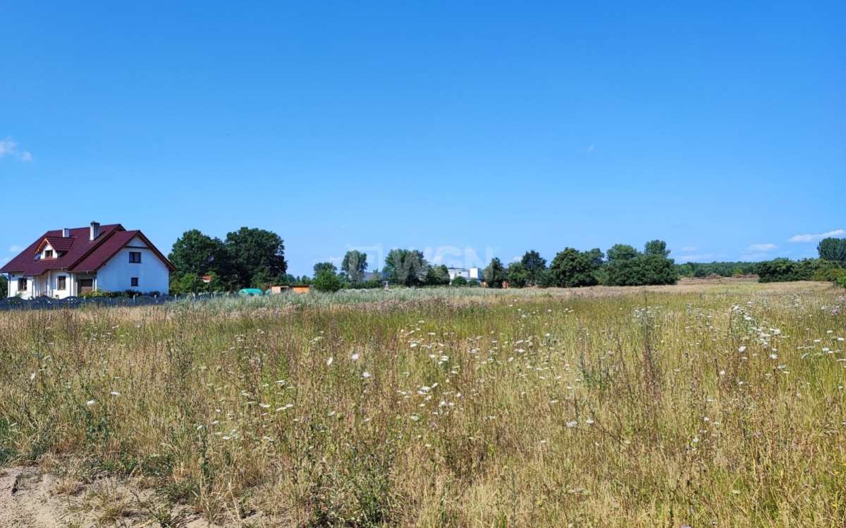 Działka w sąsiedztwie innych domów jednorodzinnych i pól.