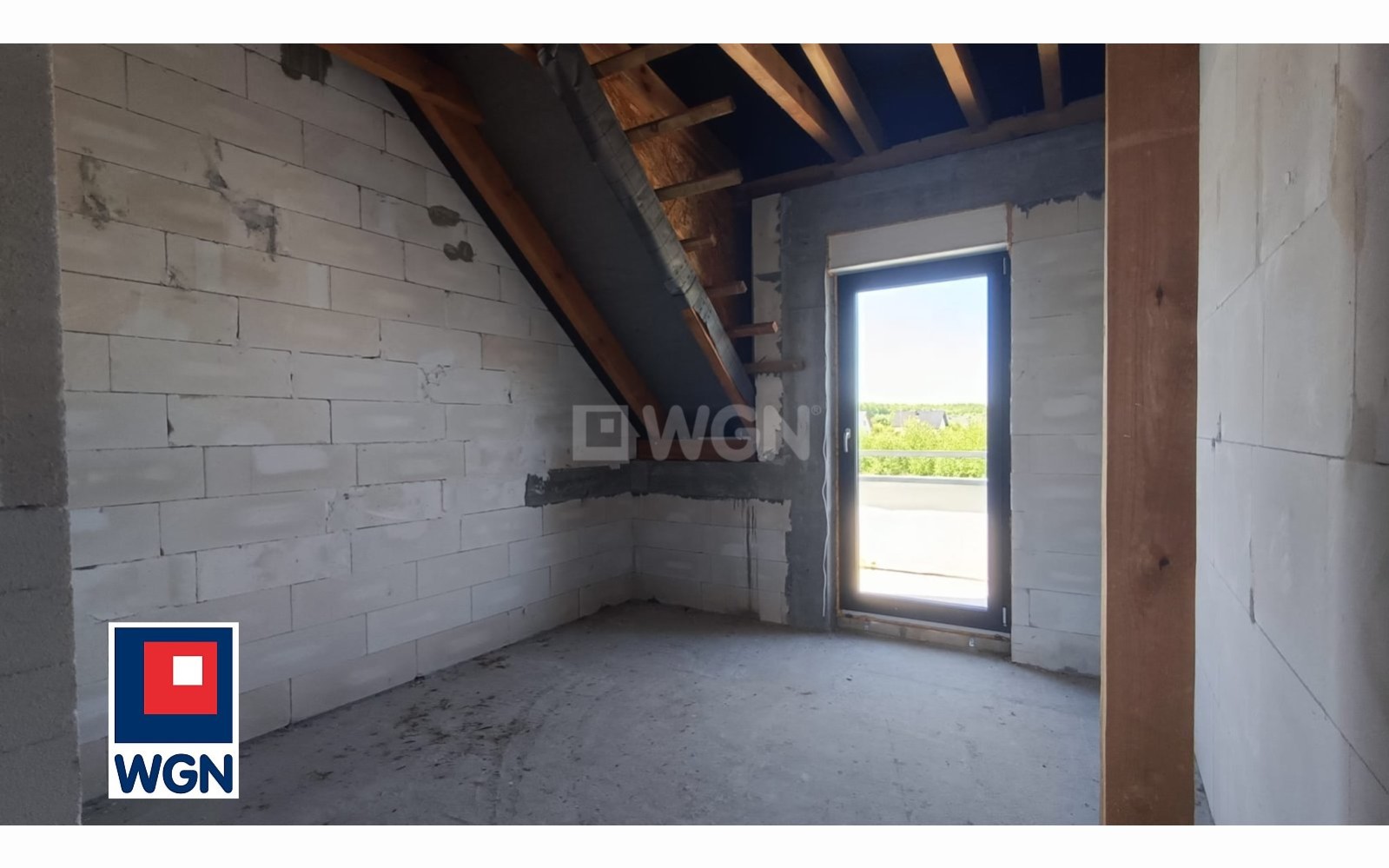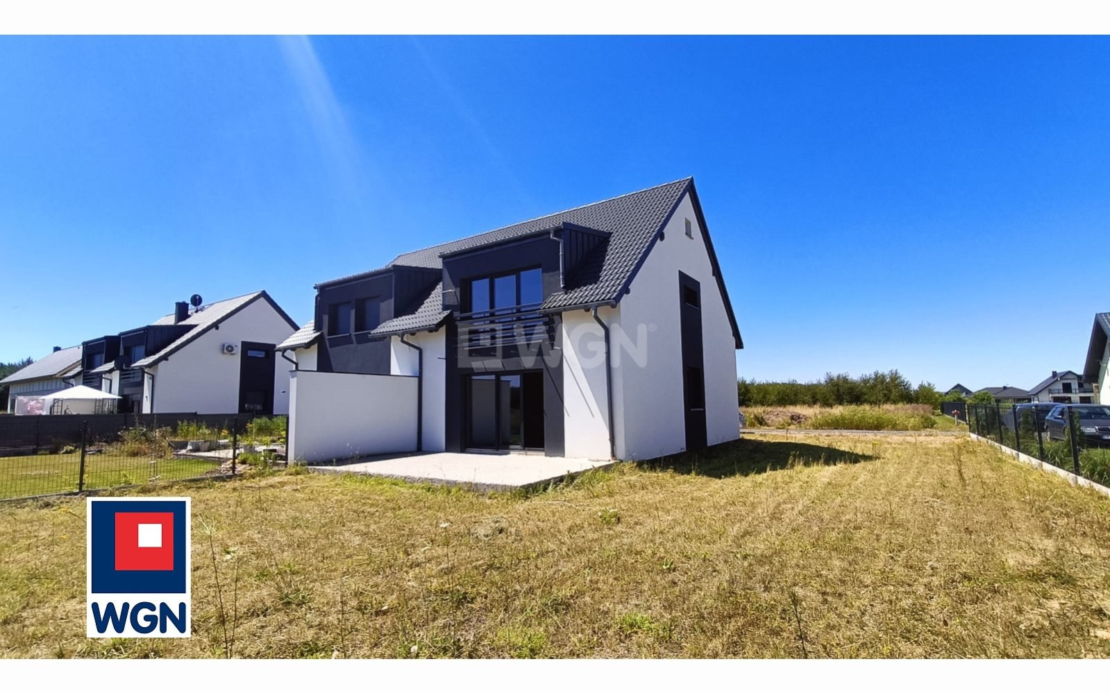 Dom posiada przestronny taras z wyjściem na tył budynku oraz balkon łączący dwa pokoje na piętrze. Dach kryty jest grafitową dachówką zakładkową, natomiast okna trzyszybowe zabezpieczone są roletami zewnętrznymi.