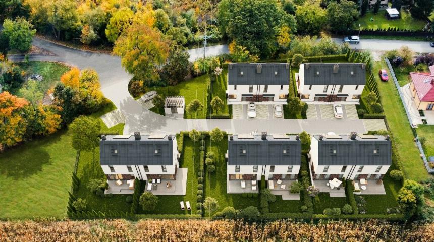 Domy znajdują się na niewielkim osiedlu składającym się z zaledwie pięciu dwulokalowych domów, usytuowanych kilka kilometrów od serca Wrocławia. Stanowi to doskonałą propozycję dla rodzin, które pragną komfortowego i praktycznego miejsca do życia w spokojnej, otulonej zielenią okolicy.