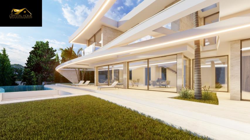 Z otwartym panoramicznym widokiem na morze i góry, ten elegancki projekt ożywia tę wyjątkową willę w dzielnicy mieszkalnej Monte Olimpo.