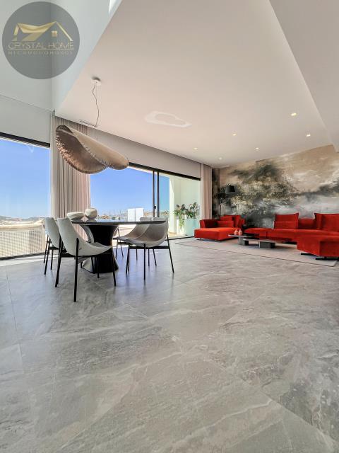 Przoduje tu minimalistyczne wzornictwo, czyste, proste linie, które idealnie komponują się z naturalnym śródziemnomorskim krajobrazem. Duże, nowoczesne okna, tworzą otwarte przestrzenie i zapewniają naturalne światło jednocześnie tworząc przestrzenną integrację między wnętrzem domu a ogrodem.