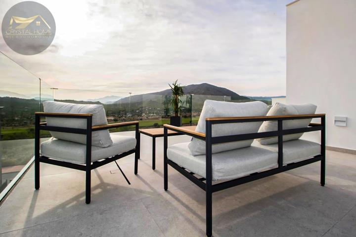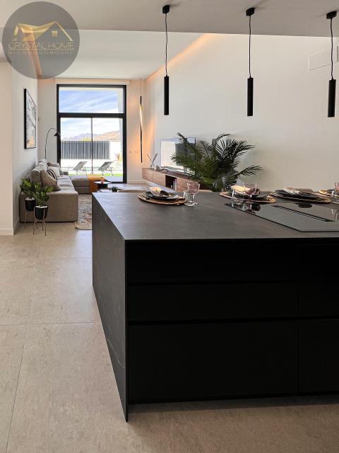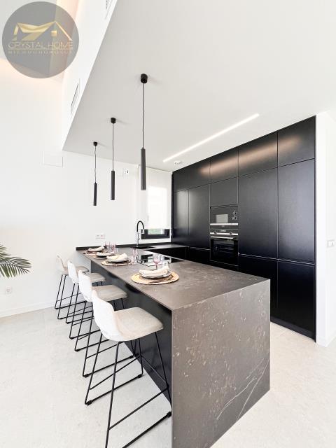 Na parterze wita Cię jasna i przestronna część dzienna. W pełni wyposażona, najnowocześniejsza kuchnia łączy się z jadalnią i wygodnym salonem, tworząc idealnie zgraną całość. Ponadto nieruchomość posiada 3 dwuosobowe sypialniei3wpełni wyposażone łazienki. Główna sypialnia znajduje się na pierwszym piętrze i wyposażona jest w garderobę, prywatną łazienkę i posiada bezpośrednie wyjście na taras słoneczny, z którego roztacza się zapierający dech w piersiach widok na okolicę. Na piętrze znajduje się kolejna sypialnia z garderobą i prywatną łazienką. Trzecia dwuosobowa sypialnia, również z zabudowaną szafą, znajduje się na parterze.