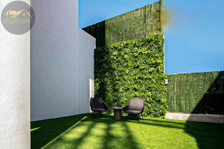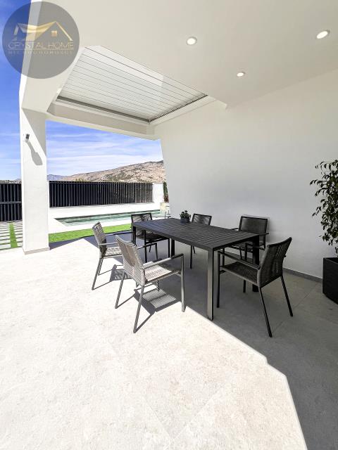 Zewnętrzna część willi jest równie imponująca, dysponuje prywatnym basenem, idealnym do orzeźwienia i relaksu w ciepłe dni. Do użytku mieszkańców jest również zadaszone miejsce do wypoczynku z książką lub posiłkiem na świeżym powietrzu, z dużą ilością miejsca do zabawy dla dzieci lub zorganizowania kolacji z przyjaciółmi przy grillu. Willa obejmuje również werandę i prywatny, śródziemnomorski ogród. Na terenie posesji znajdziesz również prywatne miejsce parkingowe.