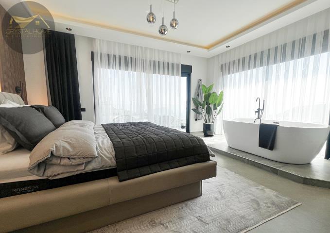 Basen ze szklanym frontem, aby zachować wspaniały widok na całe miasto, góry, Zamek w Alanyi i bardzo piękną całą okolicę.