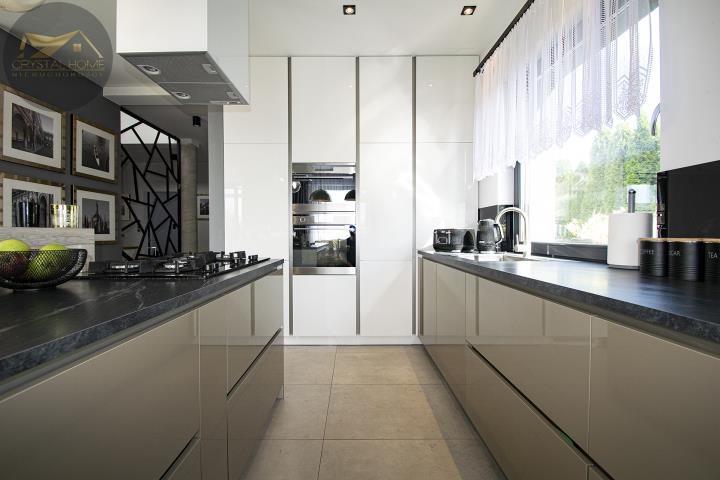 - przestronny salon z wejściem do ogrodu połączony z nowoczesną kuchnią w bardzo wysokim standardzie