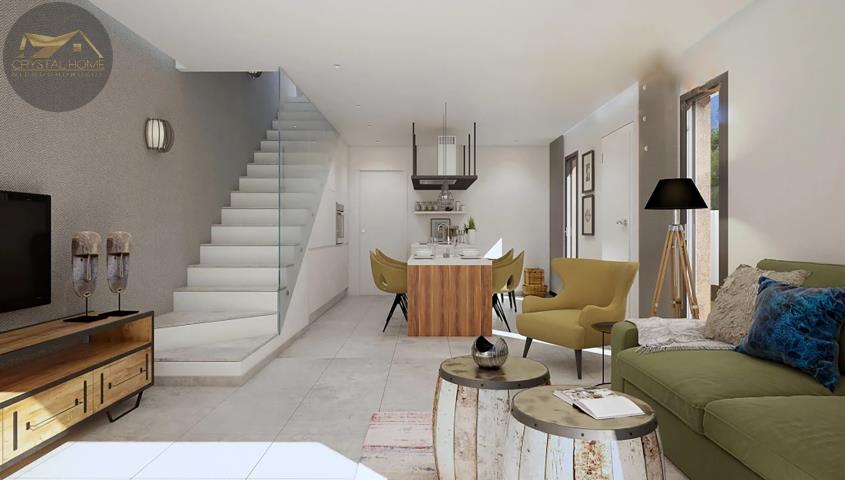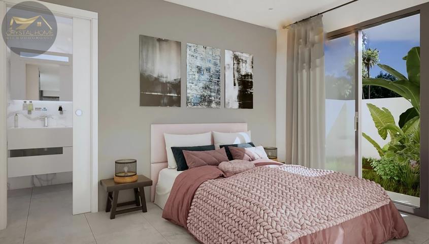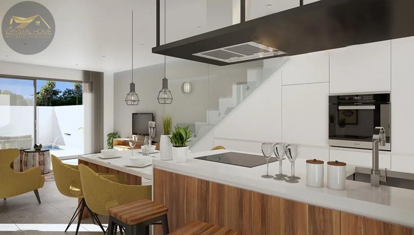 Dom posiada 3 sypialnie oraz 3 łazienki. Na parterze jest duża otwarta kuchnia z wyspą połączona z salonem, gdzie będziesz cieszyć się dużą przestrzenią i łatwym dostępem do basenu przez duże drzwi tarasowe.