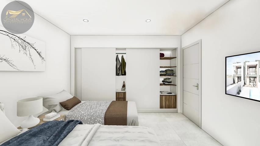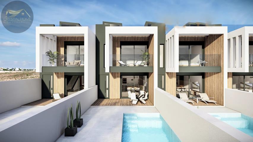 Przedstawiamy luksusowy kompleks 8 domów szeregowych z prywatnym basenem i solarium. Ponadto w ramach inwestycji znajduje się gotowa do zamieszkania parterowa willa z 2 sypialniami i 2 łazienkami.