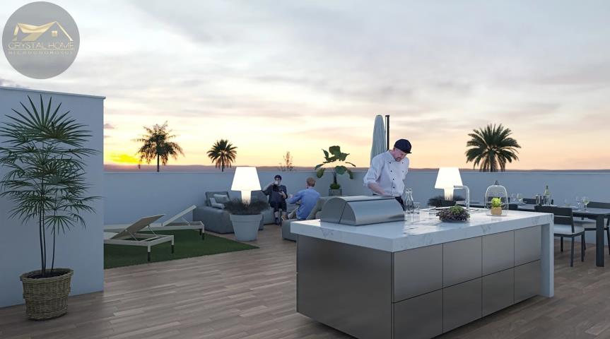 Niesamowite solarium na szczycie domu czyni go wyjątkowym i idealnym, aby cieszyć się słońcem przez cały rok. To wprost idealne miejsce aby organizować spotkania przy pysznej kolacji i winie z przyjaciółmi i rodziną. Znajdzie się tu wystarczająco miejsca (82 m2), aby urządzić tu część jadalna oraz wypoczynkową, a może nawet jacuzzi.