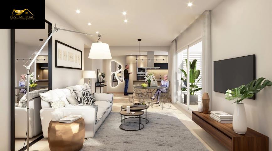 Apartamenty są z 2 sypialniami i 2 łazienkami od 68 do 75 mkw. Do wyboru są apartamenty na parterze z tarasem o powierzchni 45 mkw i własnym ogrodem od 40 do 200 mkw lub najlepsze apartamenty z prywatnym solarium 75 mkw.
